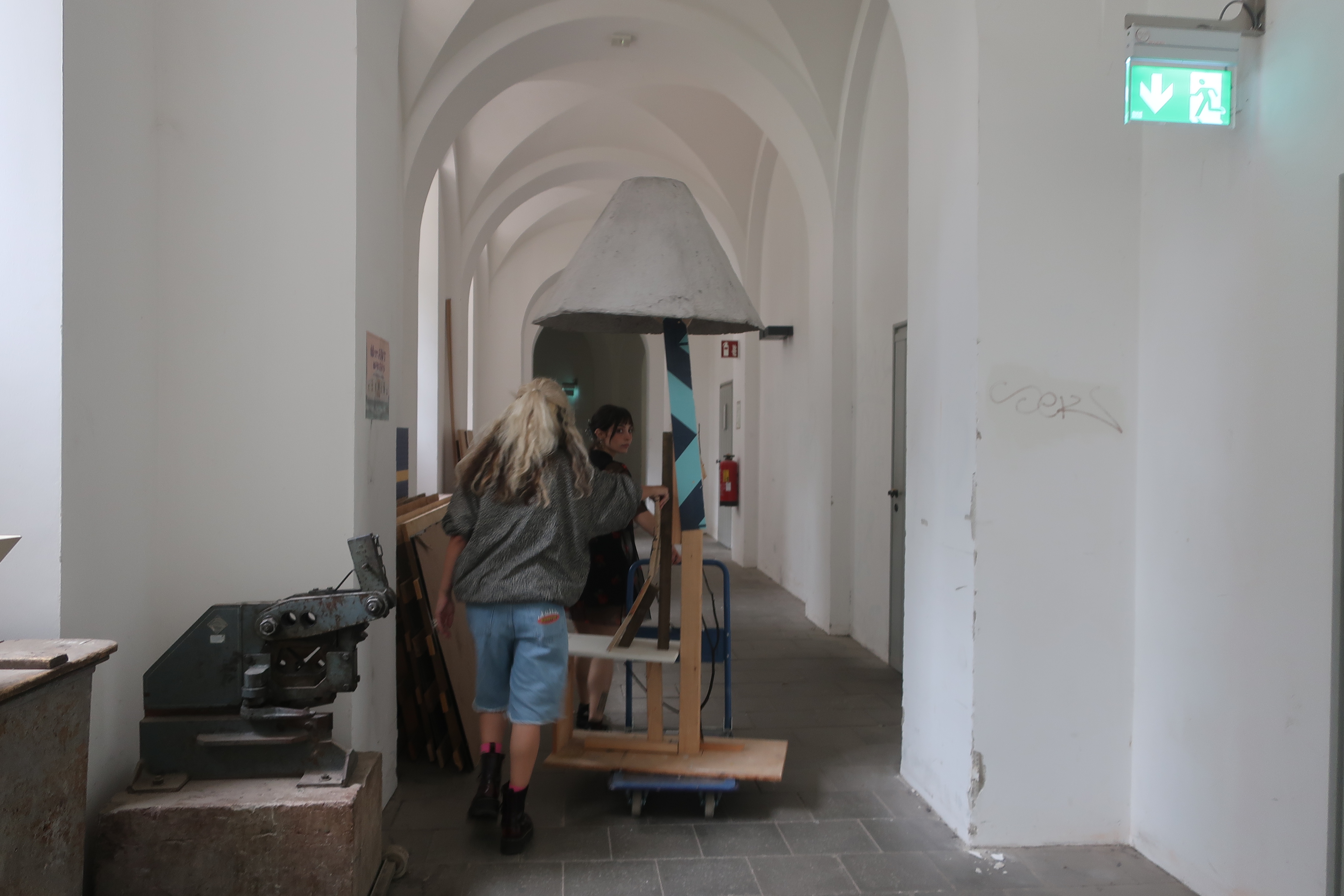 Away from the hustle and bustle of everyday exhibition life and towards taking a break, drinking tea, lingering and being in the Academy garden. That's where our platform is. Everything you see has an old skin, but is new to you. A place with performances and concerts, for sitting and drinking tea, built from the detritus of everyday life, from reused materials that will be used again and again after the exhibition.